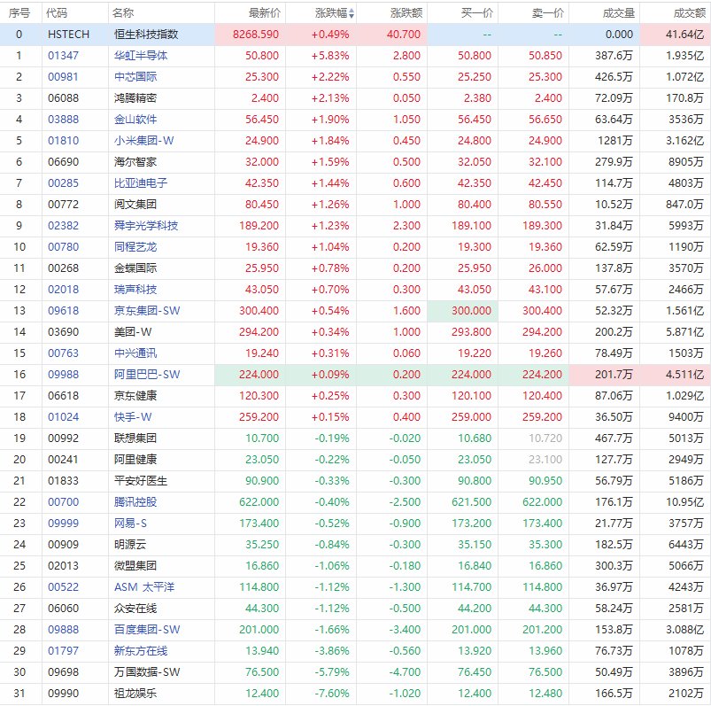 根据相关芯片代工厂发布的消息,目前上半年先进制程及成熟制程产能已被客户全部预订一空,多数代工厂都是在满负荷运作,但芯片产能缺口依然较大。受消息提振,华虹半导体涨超5%,中芯国际涨超2%。小米集团-W、比亚迪电子、舜宇光学科技涨超1%。