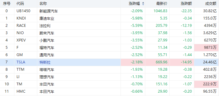华盛资讯5月4日消息,周二美股盘初,新能源车板块普跌,Fisker(FSR.N)跌超5%,股价报11.56美元;康迪车业跌超5%,蔚来汽车跌近4%,小鹏汽车跌超3.5%,通用汽车跌2%,特斯拉跌超2%。