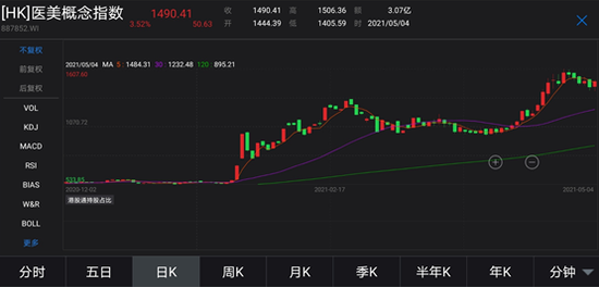 医美板块表现同样抢眼,虽然今天出现了一定的回调。截止5月4日,港股的四环医药、复锐医疗科技、瑞丽医美今年分别上涨了282%、286%、148%,表现抢眼。