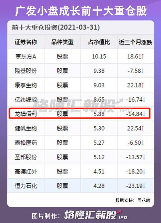 其旗下管理的广发小盘成长买入龙蟒佰利2783.75万股,占基金资产净值比例为5.88%,成为其第五大重仓股。