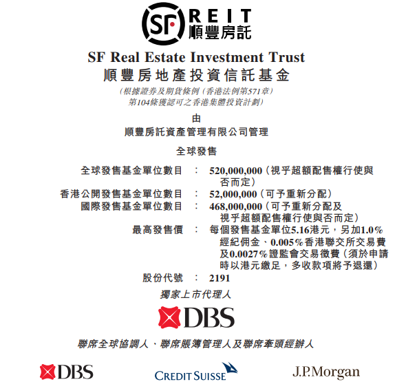 顺丰房托(02191)发布公告,将于5月5日-10日中午12时进行招股。顺丰房托前身为顺丰控股间接全资附属公司,于去年10月23日在香港成立,并由顺丰创办人王卫担任主席。