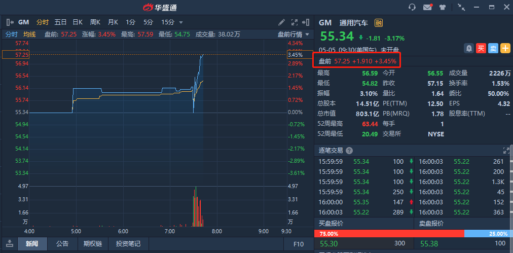 华盛资讯5月5日讯,美股盘前,通用汽车涨近4%。此前,第一季度净利润超市场预期,预计财年调整后的息税前利润将位于区间高端。