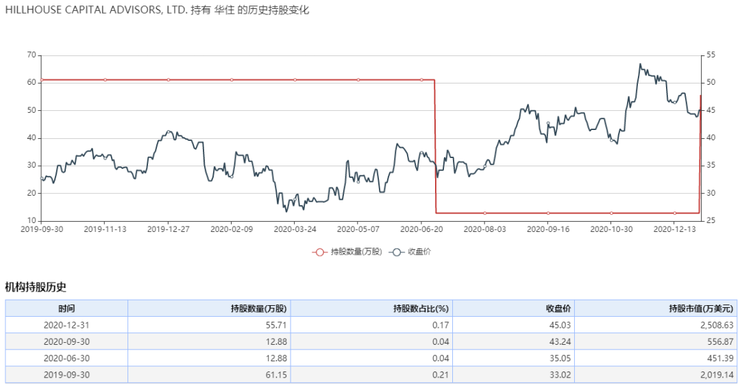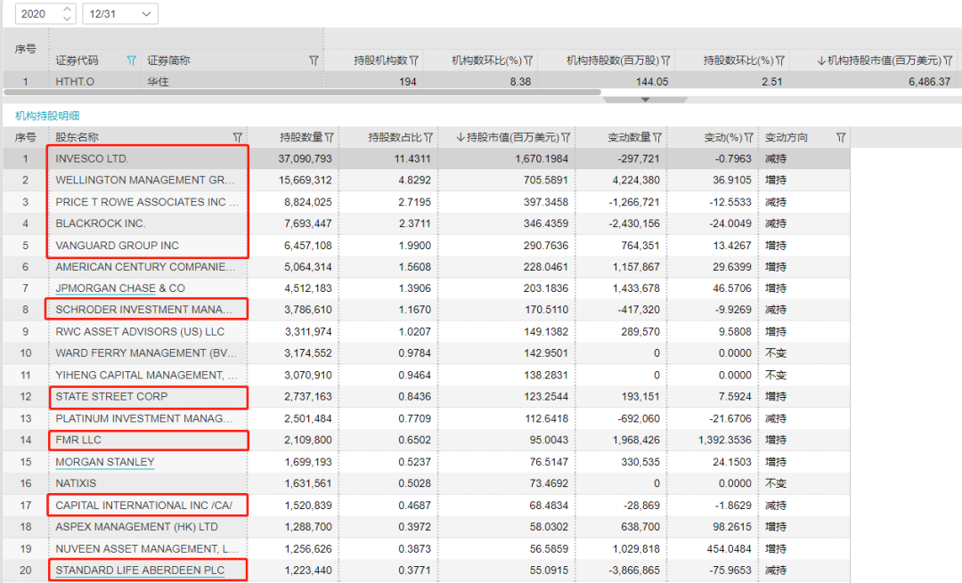 包括国内高瓴资本,虽然去年由于疫情影响减持了华住,但没有清仓,到四季度又进行了加仓动作。