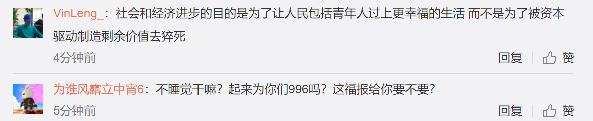 有网友表示,“社会和经济进步的目的是为了让人民包括青年人过上更幸福的生活,而不是为了被资本驱动制造剩余价值。”