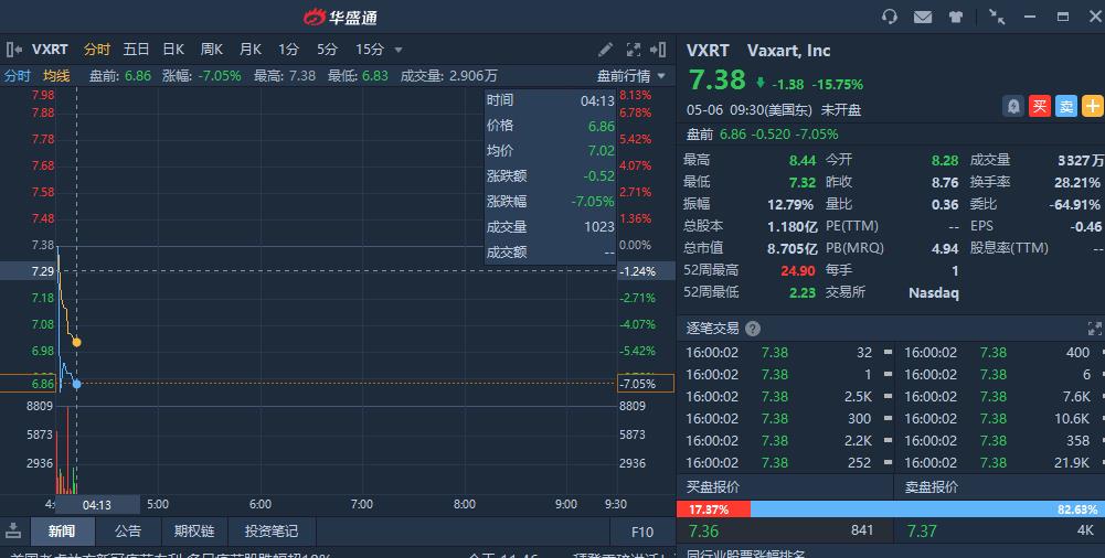 华盛资讯5月6日讯,美股盘前,美股抗疫概念股多数走低,Vaxart(VXRT.O)跌超7%,Ocugen(OCGN.O)跌近5%,BioNTech SE(BNTX.O)跌近3%,辉瑞(PFE.N)跌1.7%。此前,拜登政府表示,美国将放弃新冠肺炎疫苗的知识产权专利。