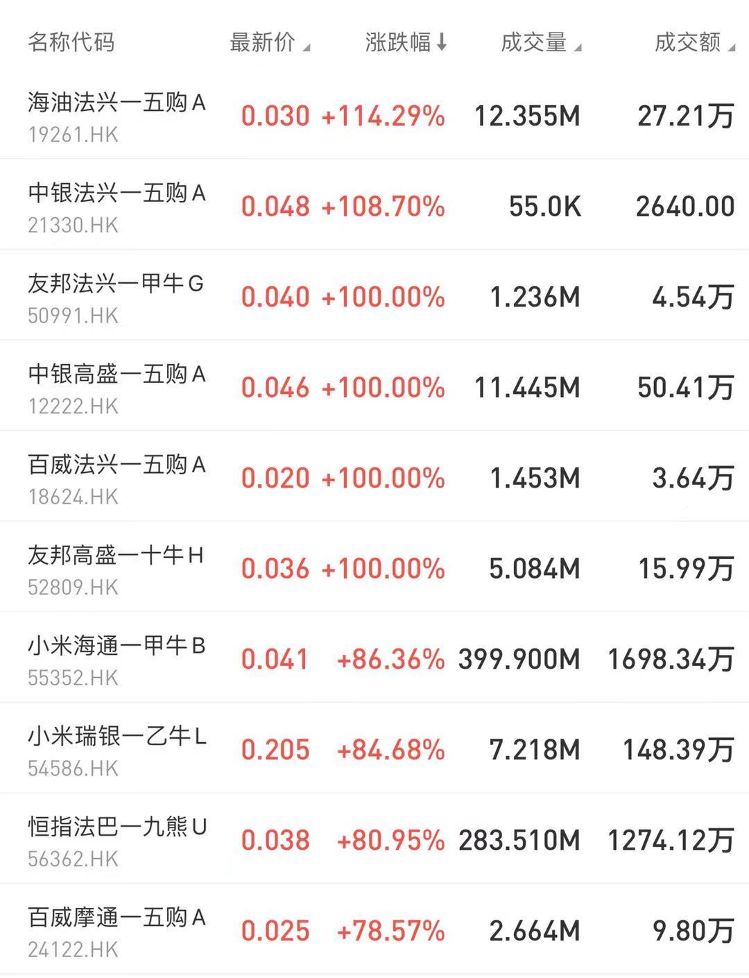 海油法兴—五购A涨114.29%占据涨幅榜第一,但成交额不高。其次是中银法兴—五购A涨108.7%、友邦法兴—甲牛涨100%。