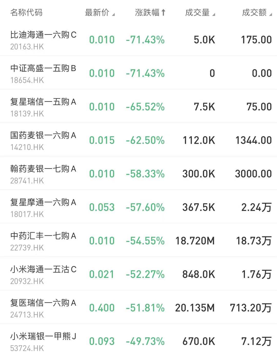 在今日跌幅榜中,比迪海通—六购C、中证高盛—五购B并列下跌71.43%;复星瑞信—五购A跌65.53%。