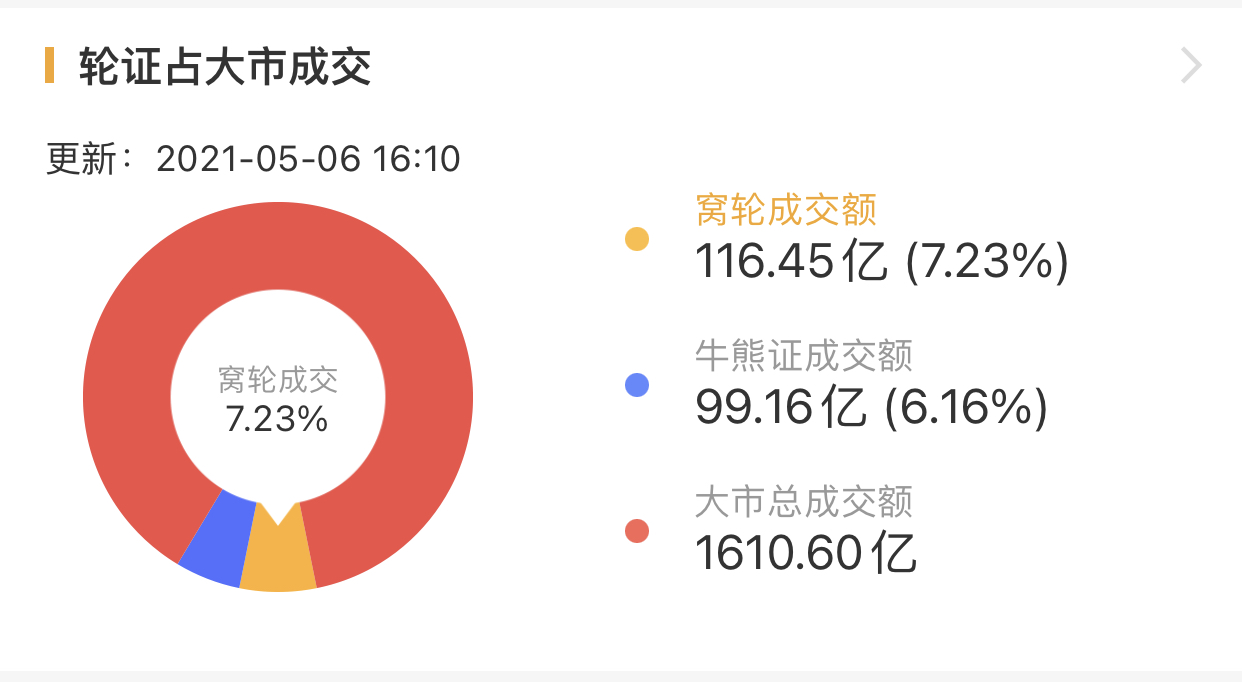 其中,窝轮总成交116.45亿港元,牛熊证总成交99.16亿港元。