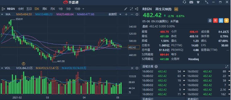再生元制药公司2021财年Q1每股盈利10.09美元,市场预期9.07美元,去年同期5.43美元。