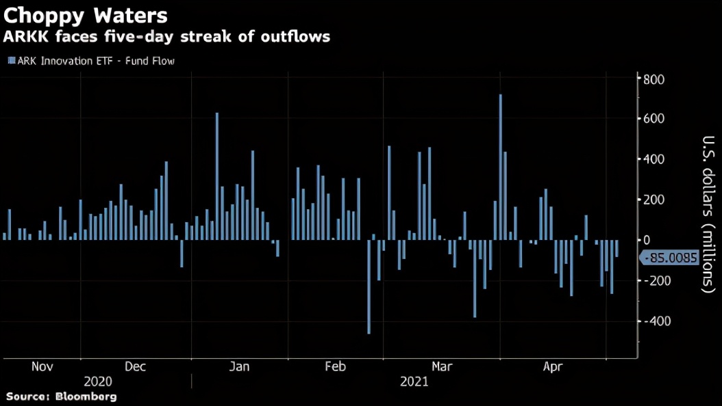 Ark的客户投资组合经理Renato Leggi表示,该ETF今年的净流入资金为68亿美元,其中2月19日至5月4日期间的净流入资金为9.92亿美元。“即使在动荡的市场中,我们也看到了资金流入。” Leggi补充道。