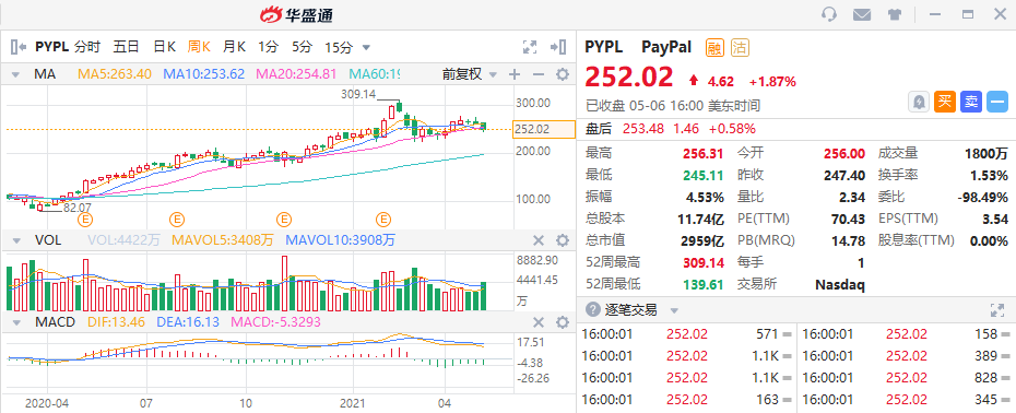截至发稿,PayPal盘后涨0.58%,报253.4美元。