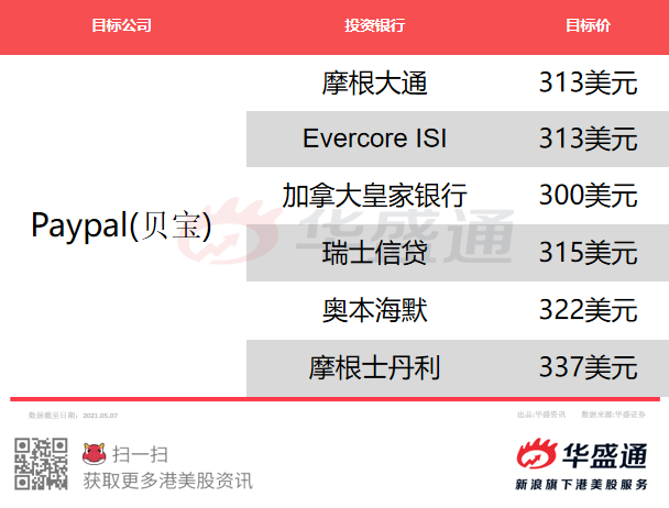 多家投行在PayPal公布业绩后,发布最新研报,目标价刷新高。
