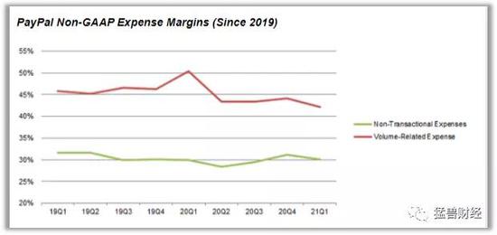在本季度PayPal的息税前利润持续改善,但由于持续对各项业务增加投资,本季度还是低于平台业务运营杠杆的正常预期。但是自2019年以来,交易费用和交易损失等与交易量相关的费用占收入的比例在持续下降,而非交易费用利润率则基本持平,因为管理层在根据收入增加投资
