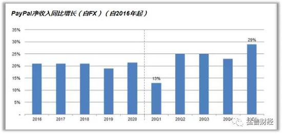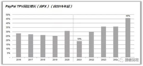 与2020年第四季度相比,PayPal的总支付额仍较上年同期增长了3.0%;相比之下,2020年第一季度则连续下跌了4.4%,显示出本季度的强劲表现。