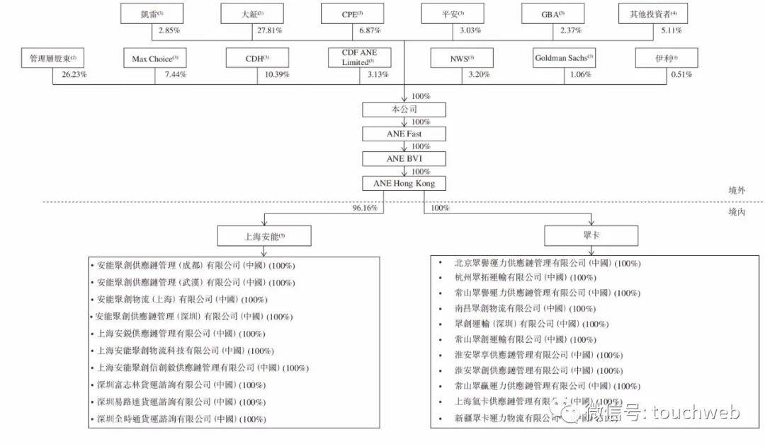 IPO前,安能物流管理层一共持股为26.23%,凯雷持股为2.85%,Max Choice持股为7.44%;