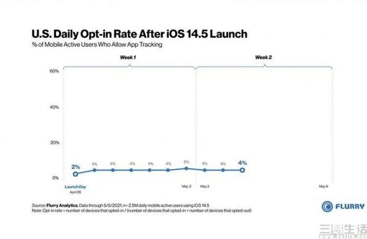 不仅如此苹果还规定,应用必须让用户自行选择是否接受隐私信息的收集,如果用户拒绝提供,应用将不得因此拒绝用户使用、也不得因此屏蔽任何功能。事实上正因这种绝对“偏袒”用户的隐私保护政策,导致iOS用户“拒绝隐私收集”的热情空前高涨。在Flurry Analytics近期对250万活跃用户的调查显示,仅有约4%的美国iPhon用户允许某些应用访问他们的个人隐私数据。也就是说,对于广告商来说他们几乎一下子就损失了90%以上的iOS用户画像数据来源,可谓是瞬间就失去了赖以维生的根基。