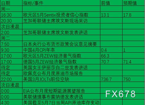 周一(5月10日)周二(5月11日)关键词:欧元区景气指数、信心指数、中国CPI、API、欧佩克月度报告