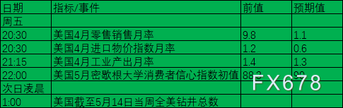 周五(5月14日)关键词:美国零售、消费者信心指数