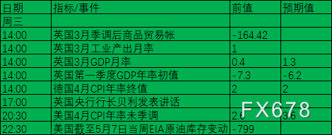 周三(5月12日)关键词:美国CPI、英国GDP、EIA