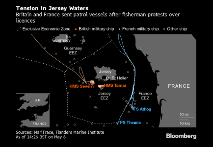 报道援引该部长说,法国渔民仍缺少40张在英国水域捕鱼的许可证。他还要求取消英属泽西岛对进入其水域施加的附加条件。