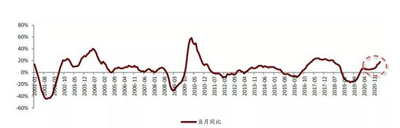 图表:2001/1至2021/3全球半导体销售额同比增长情况