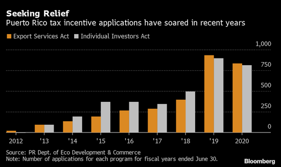 根据这个联邦领地的经济发展和商务部的数据,波多黎各在2019财年和2020财年收到近3,500份税收优惠申请,超过过去7年的总和。该机构的一位发言人说,在截至3月的六个月中,已经收到1000多份申请。