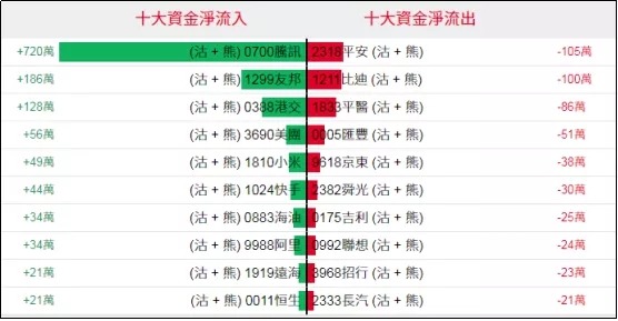 周一港股通南向资金大幅流出,单日录得约64.7亿港元净卖出。中海油、小米单日分别录得约6亿、4.3亿港元资金净买入,其他李宁、中国神华、中移也有较多资金净买入;美团、腾讯单日分别录得37.6亿、13.5亿港元巨量资金净卖出,其他海底捞、复兴医药、紫金矿业亦录得较多资金净卖出。