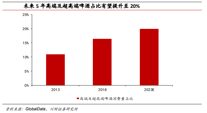 据英国权威品牌评估机构Brand Finance发布的2020年全球最具价值啤酒品牌报告显示,科罗娜以80.65亿美元的品牌价值高居榜首,百威、哈尔滨品牌都在榜单前十。川财证券认为,当前啤酒行业整体经营策略已经由销量驱动转为品牌驱动,这将使得头部酒企加快产品高端化的推进速度。从消费场景和消费偏好的角度看,以家庭自饮消费为主的国内市场将更注重产品品质,未来五年高端啤酒市场占比将逐步提升,因此长期利好更加注重产品品质和差异化的头部品牌。