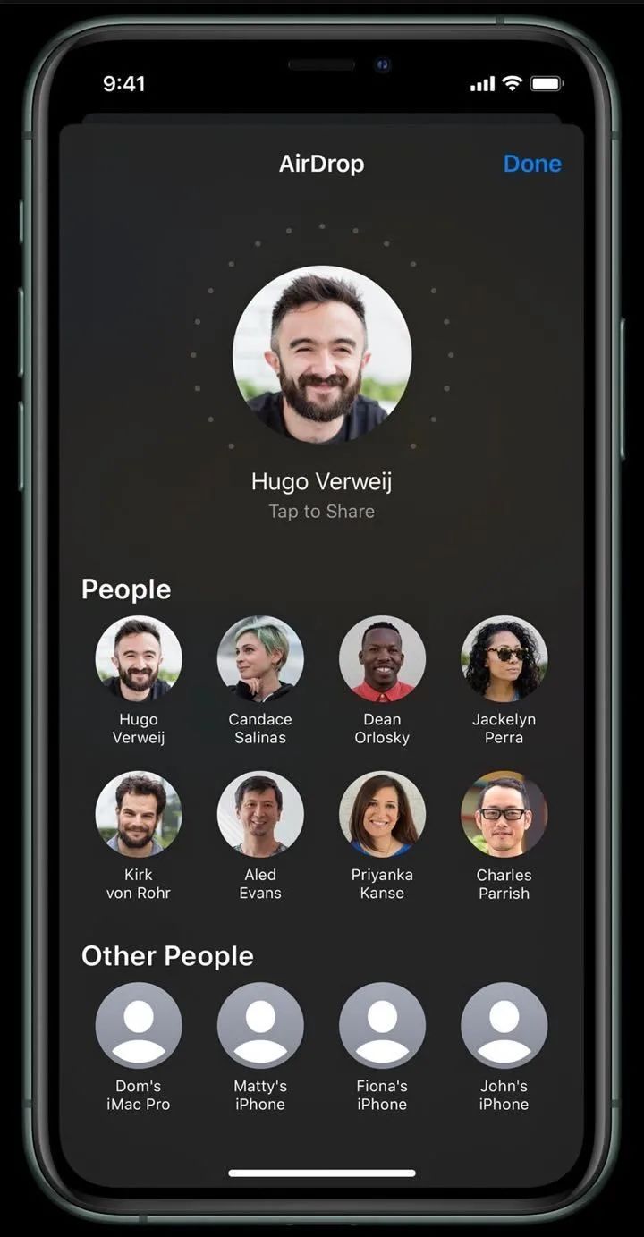 AirDrop 如果检测到了 iPhone 指向另一台 iPhone,就会将这个人的头像置顶显示|Apple