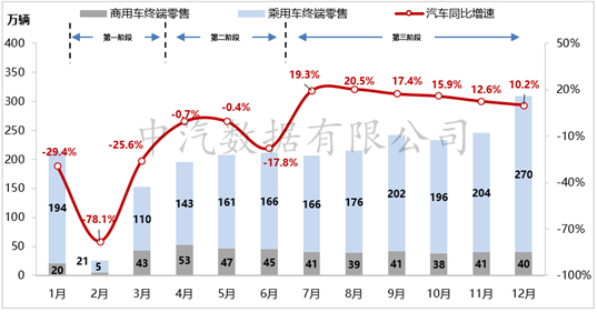 2020年中国汽车市场终端零售表现 来源:中汽数据