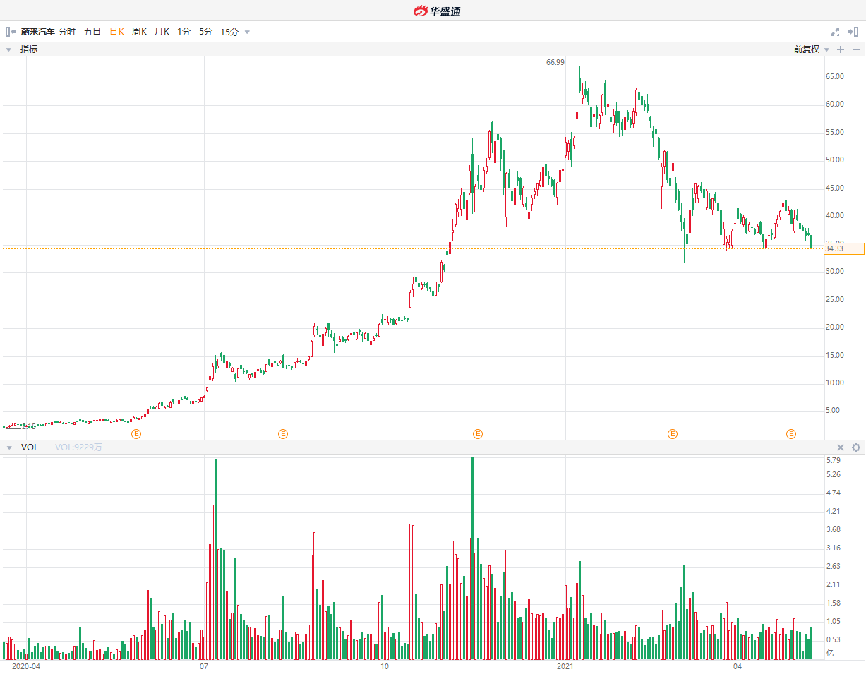 以蔚来汽车为代表的国内新能源造车势力气势如虹,曾走到退市边缘的蔚来汽车在一年多的时间内,股价自最低1.19美元飙升至最高66.99美元,顶峰时市值超过1000亿美元,跻身全球车企前十的位置。