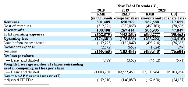 容联云(RAAS.US)向美国SEC递交了20F报告,披露了公司截至2020年12月31日的2020年年报和最新股权结构。财报显示,该公司2020年营收7.68亿元(人民币,下同),上年同期为6.50亿元。