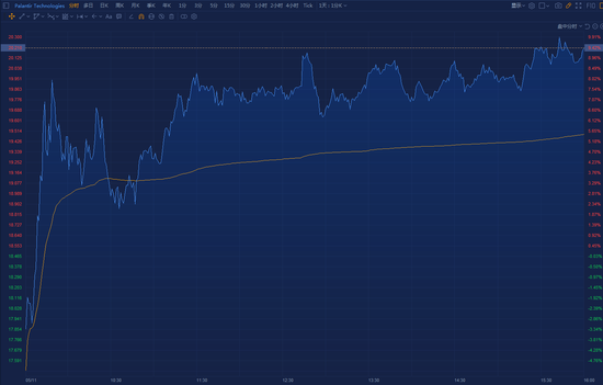 在一季度财报公布之后,Palantir股价出现反弹,结束了此前连续10天的下跌,盘中涨幅更一度超过9.9%。Palantir股价收盘报20.21美元,涨9.42%。而此前10天的下跌幅度接近23%。