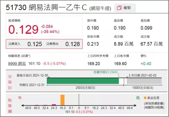 2、看错方向:网易法兴一乙牛(51730.HK),周二大幅下跌39.44%。