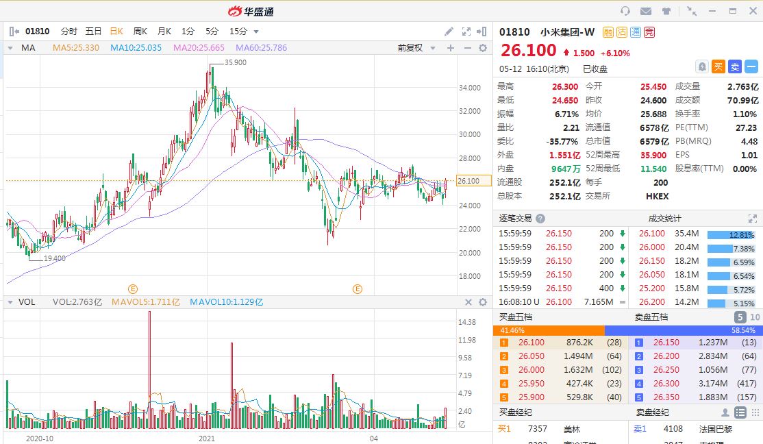 在5月12日,一则消息引爆了小米集团的股价。截至收盘,小米集团股价涨超6%,总市值站回6500亿港元上方。