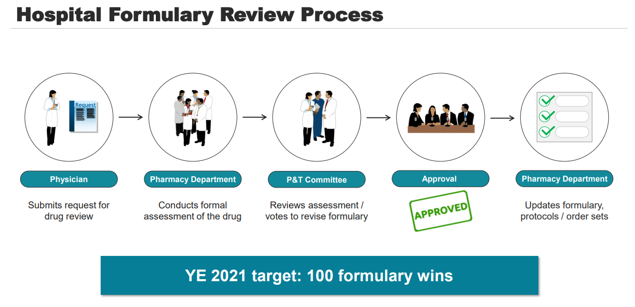 在分析师Tsao看来,Trevena从2月份起大规模展开Olinvyk的销售活动,并主要通过数字销售渠道。目前,Olinvyk在药物审查的各个阶段有超过60项记录。该公司提到,目前已有十家客户将Olinvyk加入其惯例采购清单。其年底目标是实现与100家医疗机构就该药物使用达成合作。