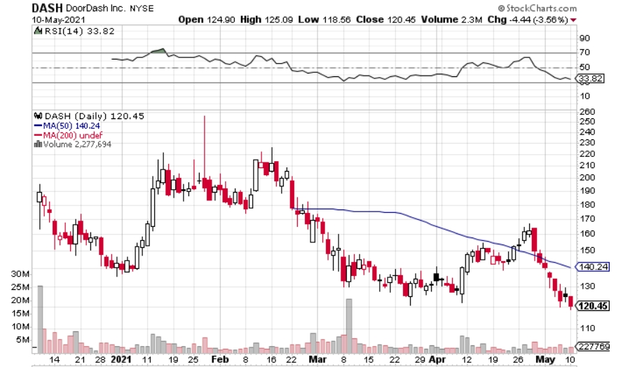 正如你所看到的,股价正处于低点附近,在收益公布之前进场很诱人。由于疫情仍在改变着人们的日常生活,“DoorDash”第一季度可能表现强劲。