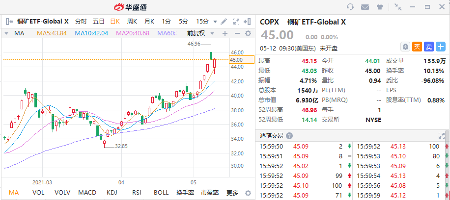 截至5月10日,COPX的净资产达到11.52亿美元。5月以来,该ETF上涨14.04%,而今年以来的累计涨幅已经达到48.22%。