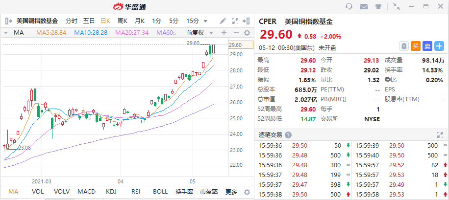 1、United States Copper Index Fund(CPER),美国铜指数基金