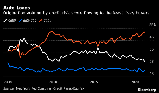 上个季度,汽车贷款增至创纪录的1.38万亿美元,并且越来越多来自高信用分的美国人。