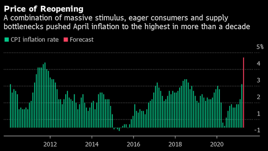 据美国劳工部最新数据,4月份CPI同比增长了4.2%,创2008年9月以来最大同比增幅。