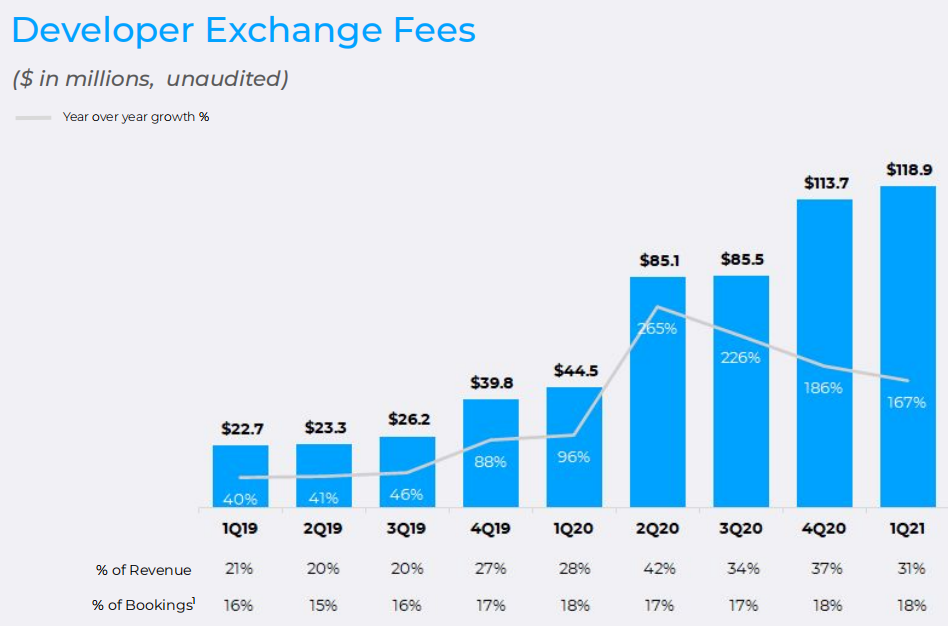 尽管Roblox已经连续亏损13个季度,但机构天风认为亏损扩大的主要原因是,开发者分成快速增长。