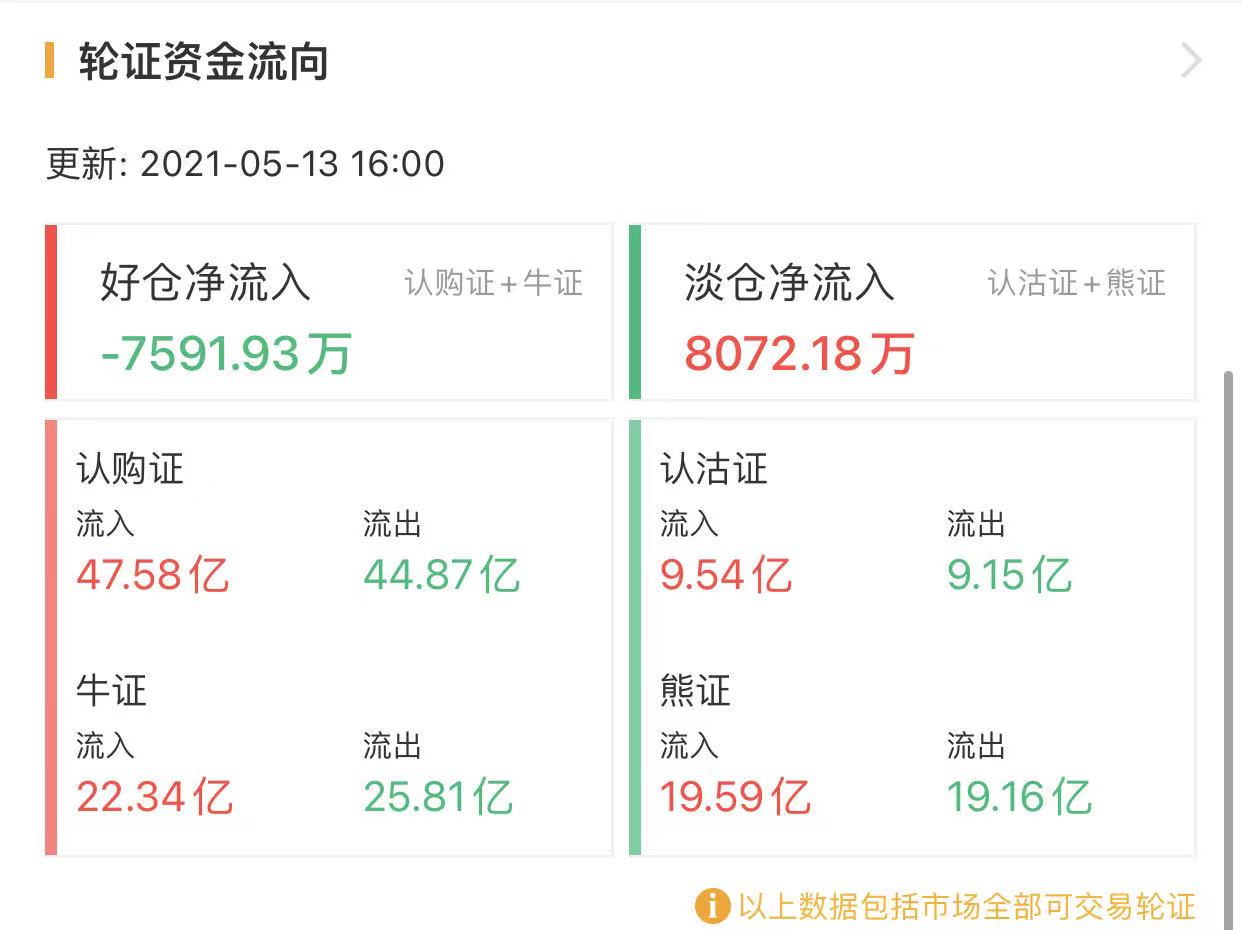 其中,窝轮总成交112.53亿港元,牛熊证总成交91.03亿港元。