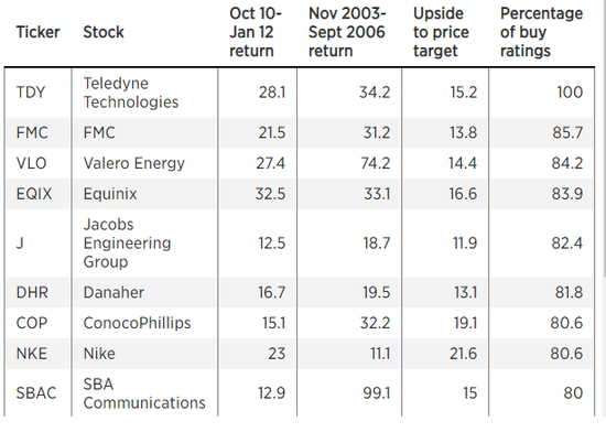 这些上市股票在华尔街也很受欢迎。都有超过70%的买入评级,而且其12个月的平均目标价格至少有10%的上升空间。 (中文投资网)