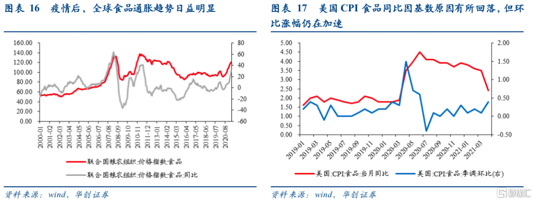 CPI食品同比上涨2.4%,拉动CPI同比0.34个百分点;环比上涨0.4%,拉动CPI环比0.06个百分点。疫情后,全球食品通胀趋势日益明显,美国也不例外。截至4月,联合国食品价格指数今年以来已上涨11.4%,较去年5月上涨32.8%。虽然4月份美国CPI食品同比因基数原因有所回落,但环比涨幅仍在加速。