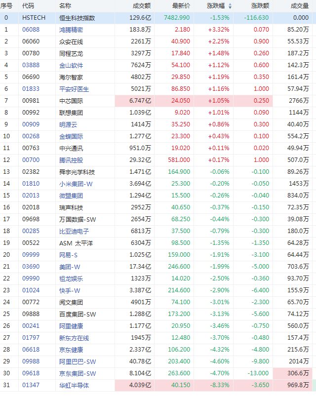 鸿腾精密涨超2%,众安在线涨超2%。