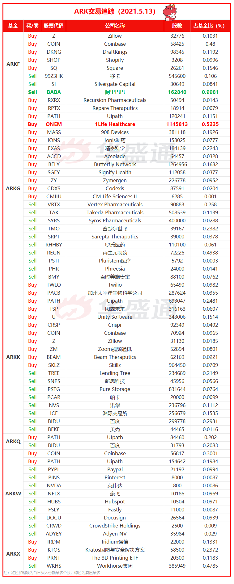 ARK5月13日共交易67笔,买入35笔,卖出32笔。