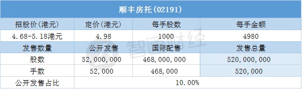 5月14日,顺丰房托(02191)配售结束。配售招股价为4.68-5.18港元,最终定价4.98港元,每手4980港元。