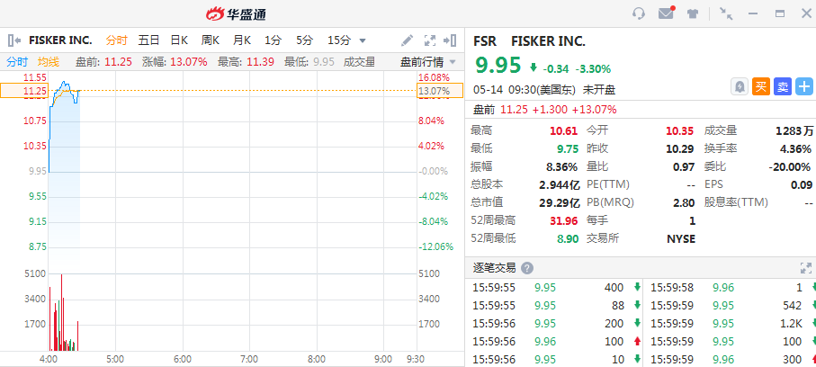 Fisker(FSR)一度大涨超14%,宣布与富士康签框架协议,将在2023年开始在美国生产电动汽车。
