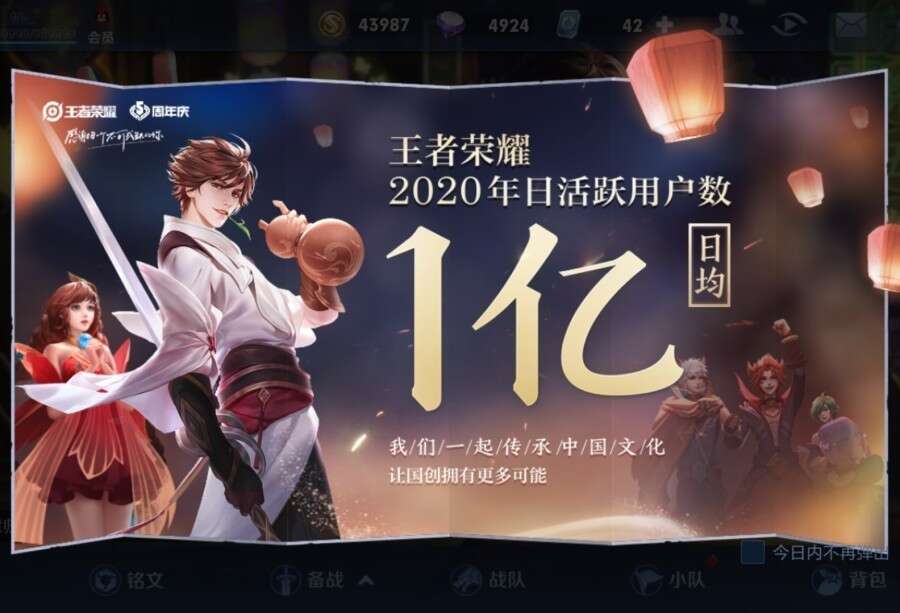 作为腾讯出品的现象级手游,《王者荣耀》自2015年上线以来,一年时间就创造了注册用户达2亿,日活用户超5000万的纪录。2020年,《王者荣耀》实现日活用户超1亿的里程碑,创造了在全球任何游戏平台都前所未有的纪录,同时夺得2020年全球手游收入榜第一名。